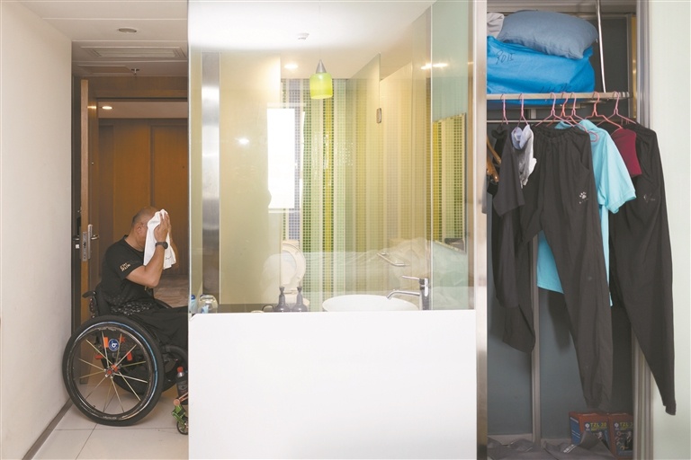 一整天的训练结束后,张健回到宿舍洗脸、换衣服。