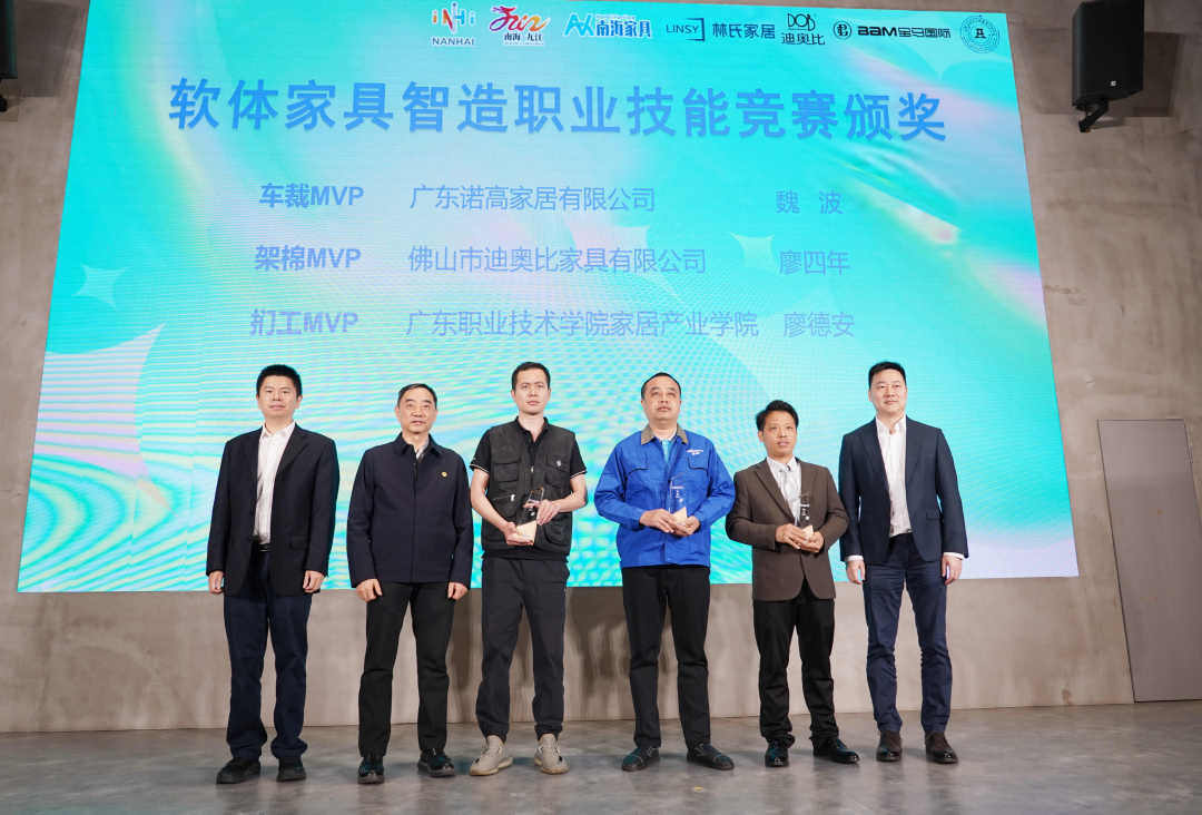 软体家具制造职业技能竞赛聚焦软体家具生产中的“裁—车—扪”三大关键环节,吸引来自8家企业的30名选手同台竞技,来自广东职业技术学院家居产业学院李金艳、廖东前、廖德安荣获团队一等奖;广东诺高家居有限公司魏波获车裁MVP;佛山市迪奥比家具有限公司廖四年获架棉MVP;广东职业技术学院家居产业学院廖德安获扪工MVP。主办方还为广东职业技术学院家居产业学院、佛山市迪奥比家具有限公司、佛山市赛可度家具有限公司授予软体家具制造技能大匠孵化基地牌匾。