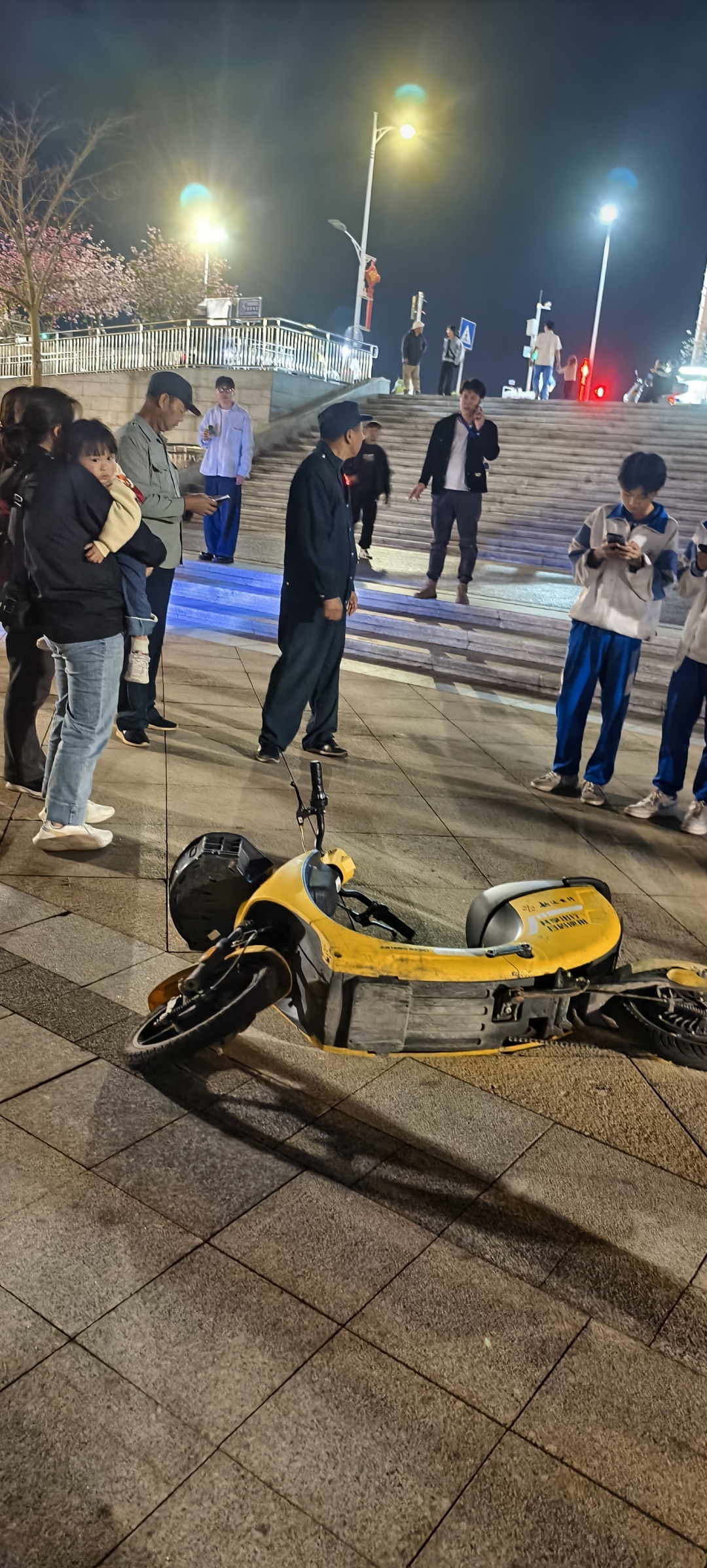 事故发生在公园正门台阶对着的碧道,正值傍晚时分,公园内散步的市民较多。两名少年骑着共享电动车,毫无征兆地从长台阶急速冲下,径直撞上了迎面走来的一家三口。巨大的冲击力将女童撞出数米远,女童跌倒在地后,吓得哇哇大哭。孩子父母惊慌失措,第一时间跑到孩子身边,心疼地将其抱起,满脸焦急。在确认孩子身体状况后,愤怒的父母转身斥责两名肇事学生。