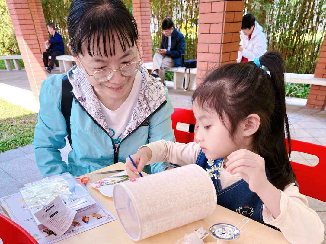 紧接着,孩子们开展了手工制作活动,参与者可以在专业老师指导和建议下完成一个环保的手工制作,孩子们用心创作,每一盏压花灯都承载着他们对鸟儿的热爱,对绿色生态的向往。