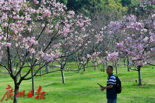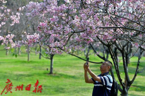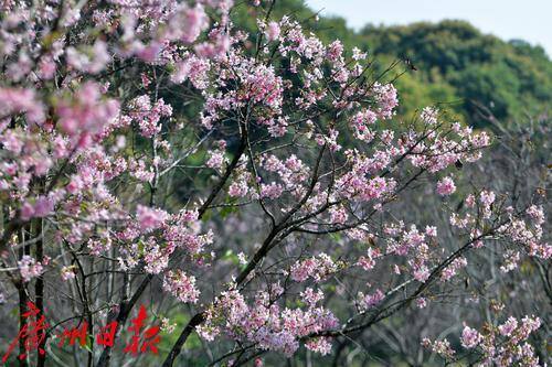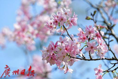 近日,黄埔区萝岗儿童公园的樱花火了,公园旁边的粉红广州樱悉数绽放,在阳光下格外美丽动人,吸引了不少市民游客前来观赏。