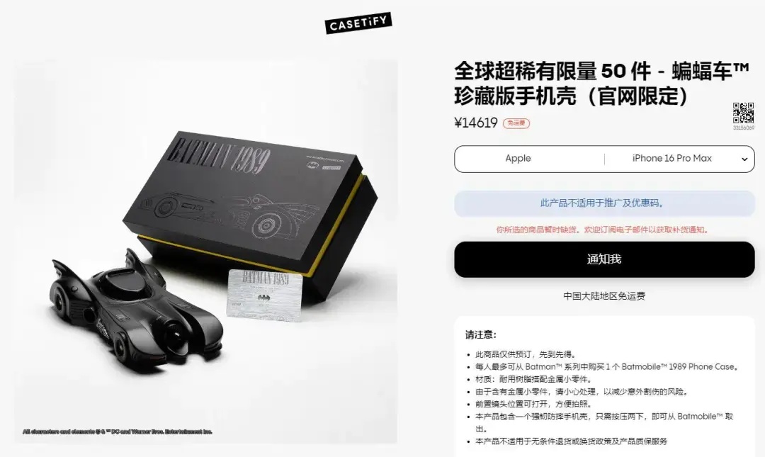 这些层出不穷的联名款,不仅让手机壳产品始终走在潮流前沿,价格也随之水涨船高。2024年,CASETiFY推出一款蝙蝠侠联名限量手机壳,售价上万元。此外,一款与“DIESEL”品牌联名的手机壳,价格超过4000元。