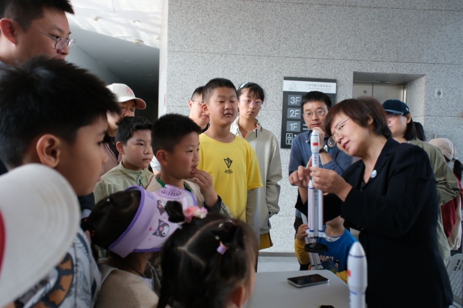 在广州气象卫星地面站天鹿湖站区,100个家庭400余名公众来到现场,在讲解员的带领下探索航天气象的奥秘。大家游览气象卫星接收天线群,揭开“大锅”和“圆球”的秘密;观看科普视频,参观风云卫星博物馆及互动馆,近距离感受我国航天气象高科技。