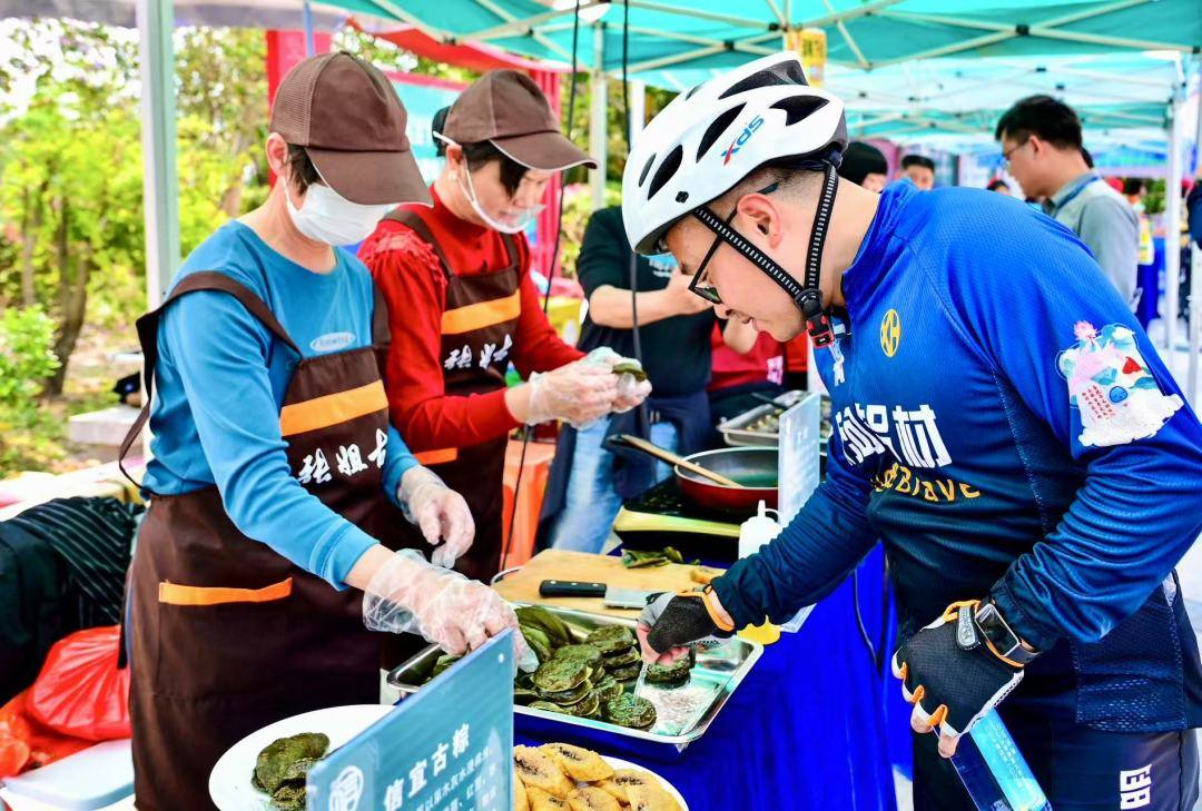 当车轮驶入窦州里文化创意街区,南洋风格与现代创意相融的建筑群令骑友眼前一亮。街区内美食集市香气四溢,食惯嘴粉、信宜古粽、簸箕炊等小吃琳琅满目,农特产品展销区的三华李干、合箩茶也引得众人驻足。骑友们纷纷停下脚步,在此品尝美食,感受信宜的历史底蕴与美食活力。“刚刚发现这儿有个中国牙雕艺术馆,等骑行结束一定来看看。”趁着周末,来自广州的骑友陈宇带着一家三口前来骑游,“没想到信宜还隐藏这个文化‘彩蛋’,有意思!”