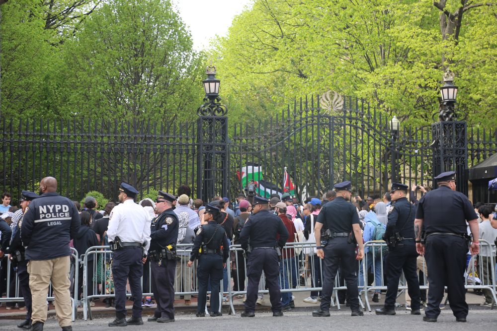 2024年4月30日,警察在美国纽约哥伦比亚大学外警戒。新华社记者 刘亚南 摄
