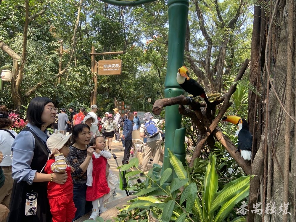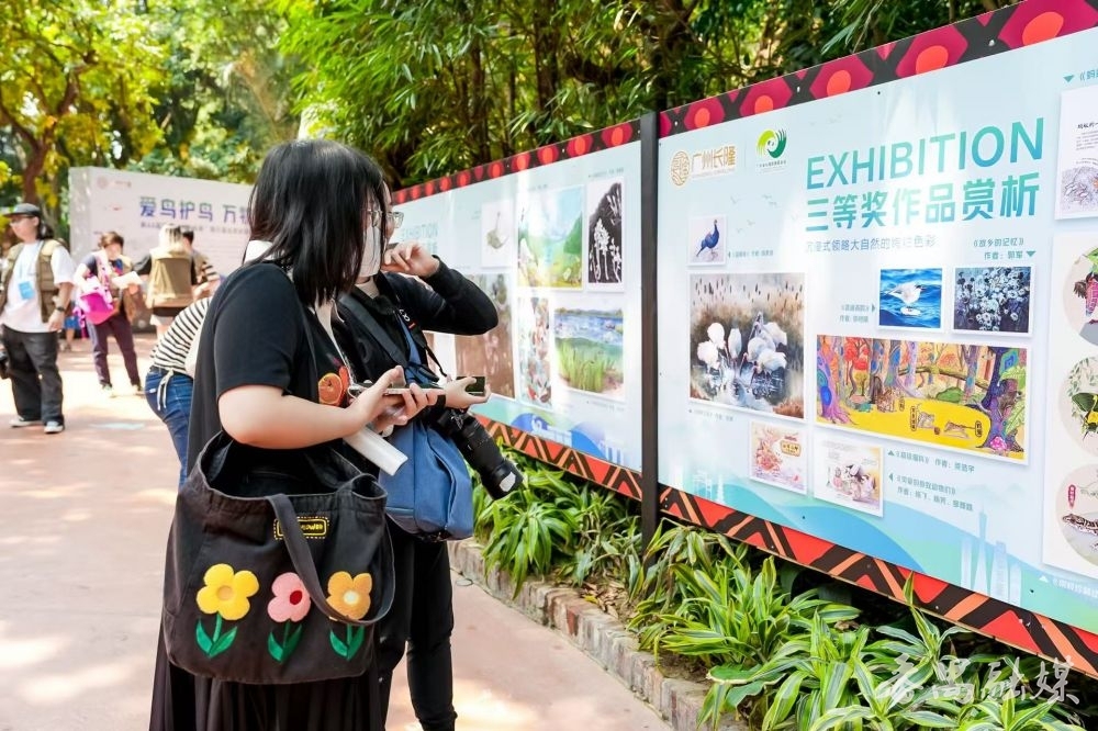 当天,第44届广东省“爱鸟周”活动也正式开启。广东地处“东亚—澳大利西亚候鸟迁徙线”上,全省记录分布有野生鸟类总计584种,其中国家重点保护鸟类136种,省重点保护鸟类107种,有迁徙属性的候鸟近400种。长隆保育了来自全球超300种、上万只的珍稀鸟类,在仪式现场,长隆展出众多今春新出生的鸟类幼崽。羽翼未丰的幼鸟们向游客们展现了春天的生命力,也引得不少爱鸟者仔细辨认拍照、记录此刻“群鸟报春”的热闹。此外,长隆通过野生鸟类图片展、摄影师现场教学等形式,介绍鸟类知识,为大众认识、保护鸟类,科学观鸟搭建了一个交流和科普的互动平台。