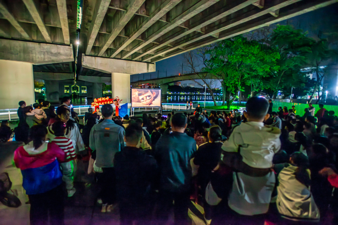 热门国漫《哪吒之魔童降世》、热血励志片《雄狮少年》、动作大片《特警使命之全城危机》轮番上映,累计吸引超300名市民驻足观影。现场更以“晚风电影市集”的创新模式,设置治水主题打卡点、小吃茶饮与“志愿好礼”摊位。市民在江风轻拂中观电影、品美食、拍美照,夜经济活力与人文温度在此交织。