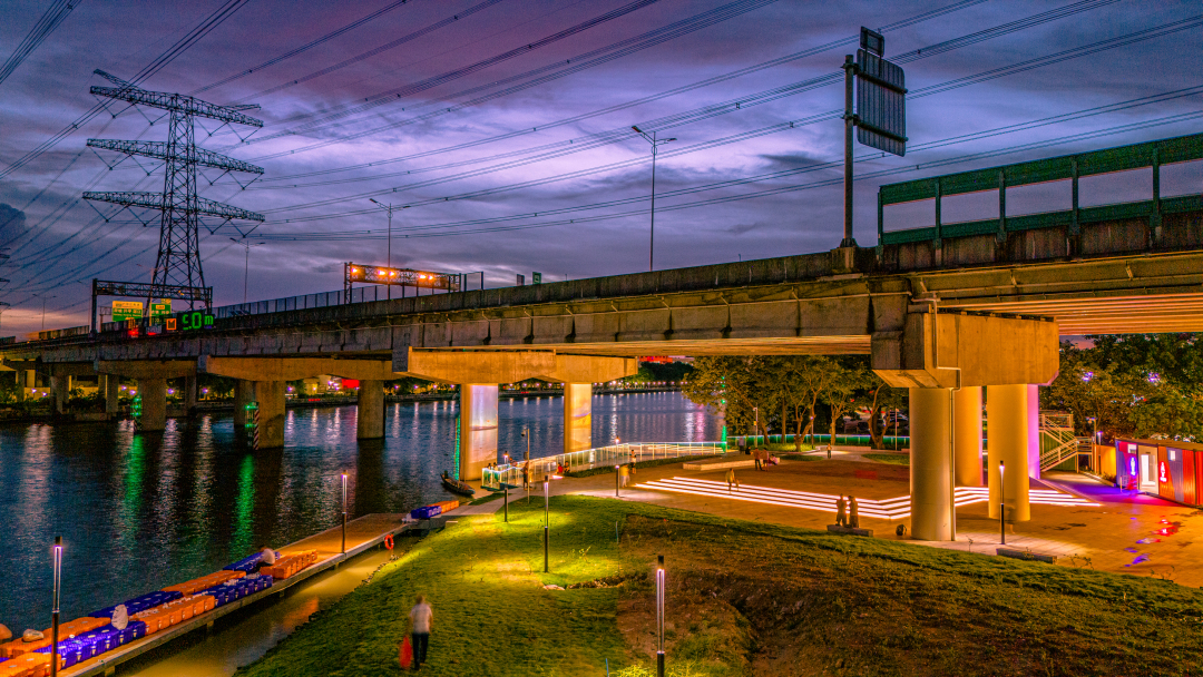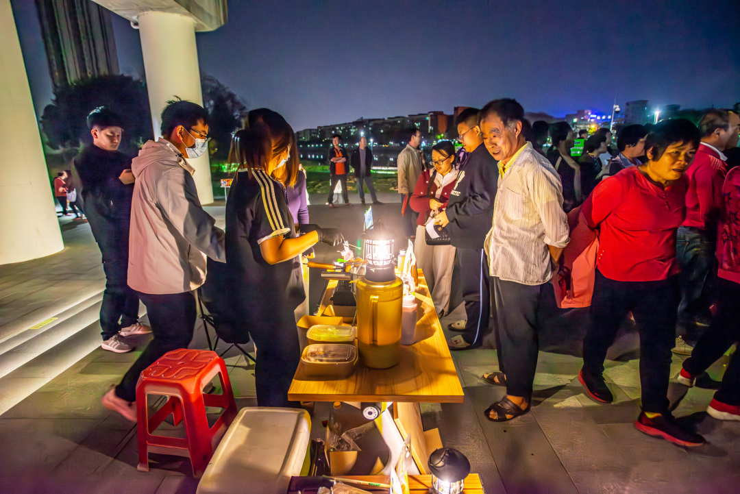 春夜江畔,繁星月色,光影交织,市集烟火。3月21日、22日晚上,佛山市顺德区均安镇凫洲河天连段美岸项目悠享水畔桥下空间人头攒动,热闹非凡。