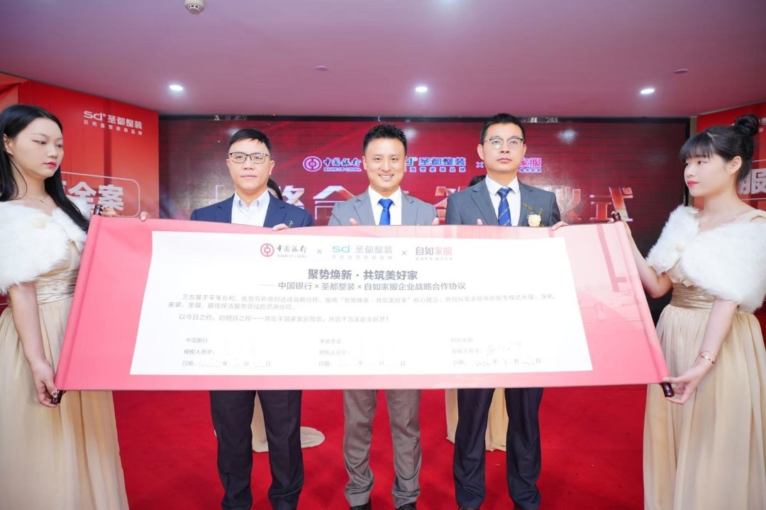 值得关注的是,现场还邀请了中国银行、自如家服与圣都整装签署生态联盟战略协议,从金融赋能到服务护航,让 “一站式理想家”拼图完整落地。