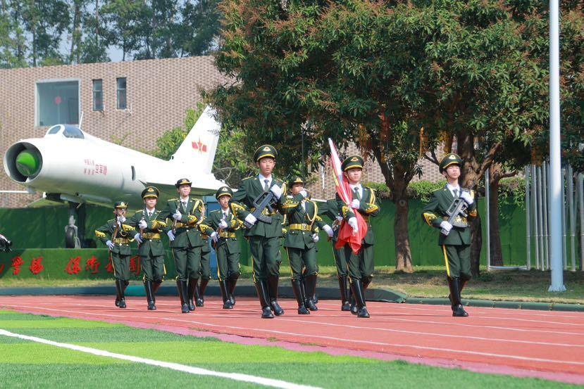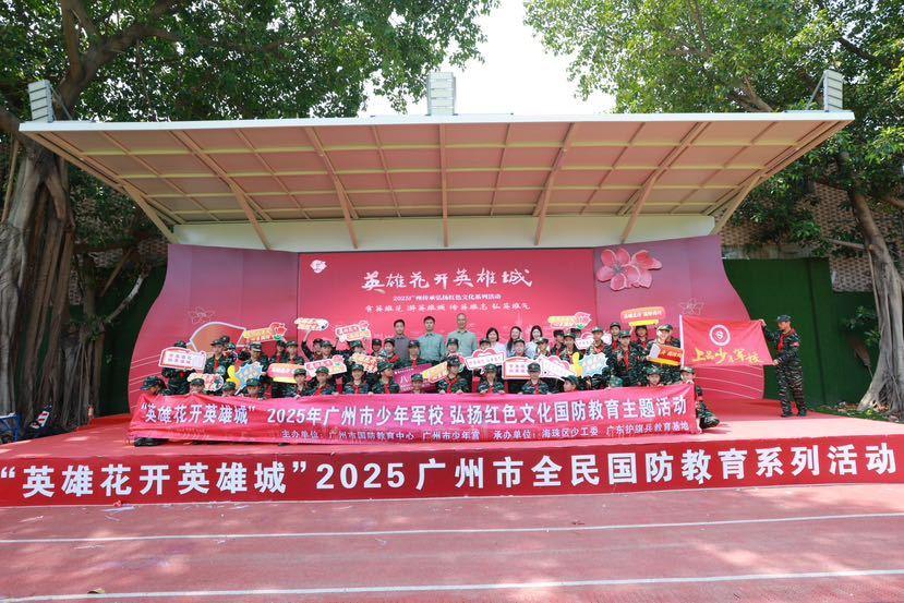 当日活动从庄严肃穆的升国旗仪式中拉开帷幕。身着绿色军装的少年军校国旗护卫队在红色木棉花的掩映下,迈着铿锵有力的步伐,护卫着五星红旗走向升旗台。此刻,“国防绿”和“木棉红”相遇,所有人心中都碰撞出火花,一种强烈的民族自豪感油然而生,爱国主义教育得到了最具象化、最鲜活的表达。