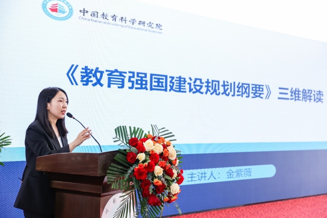 会上,金紫薇以《教育强国》为题,结合《教育强国建设规划纲要(2024—2035年)》(以下简称《纲要》)研制的时代背景,深入剖析了《纲要》的主要精神、战略部署等内容,为大家全面、准确理解《纲要》提供了有力帮助。