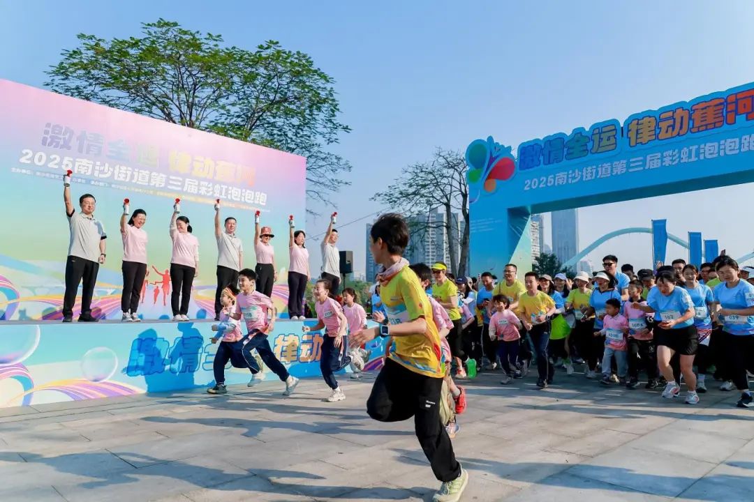 南沙街道办事处主要领导在致辞中表示,第三届彩虹泡泡跑以“运动之美映衬生态之美、群众之乐彰显发展之实”,是街道深化体旅融合、推动全民健身的创新实践。活动依托蕉门河生态资源,串联青年活力与城市发展,展现南沙“青年城”蓬勃朝气。以“激情全运,律动蕉河”为主题,联动全运会热潮,激发群众参与热情,在碧水蓝天间跑出健康生活新方式,为南沙高质量发展注入澎湃动能,生动诠释了体育事业与城市发展的同频共振。