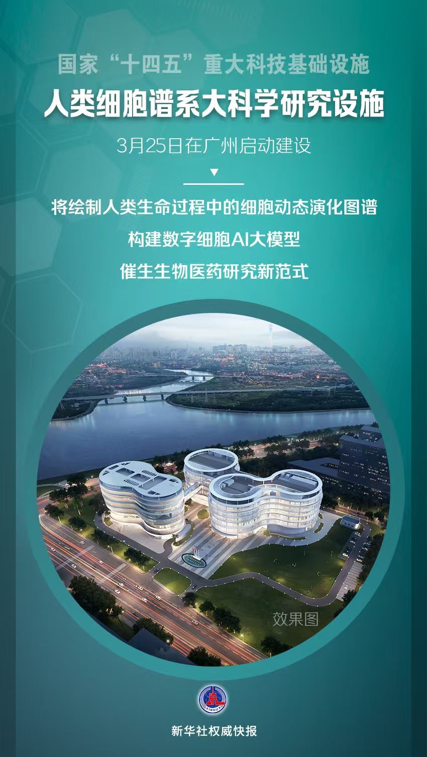 今天(25日),人类细胞谱系大科学研究设施在广州正式启动建设。