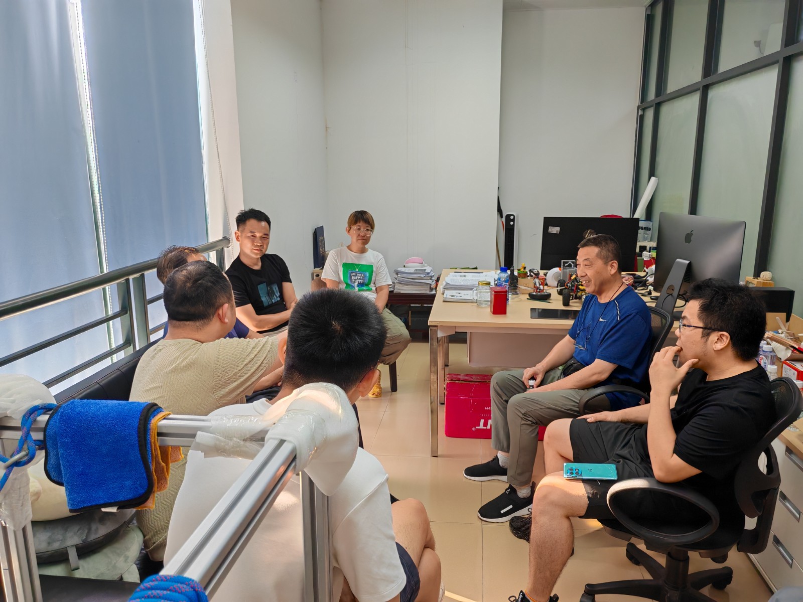 2024年9月初,几维信息科技公司核心团队成员在生产车间研讨新产品技术问题。