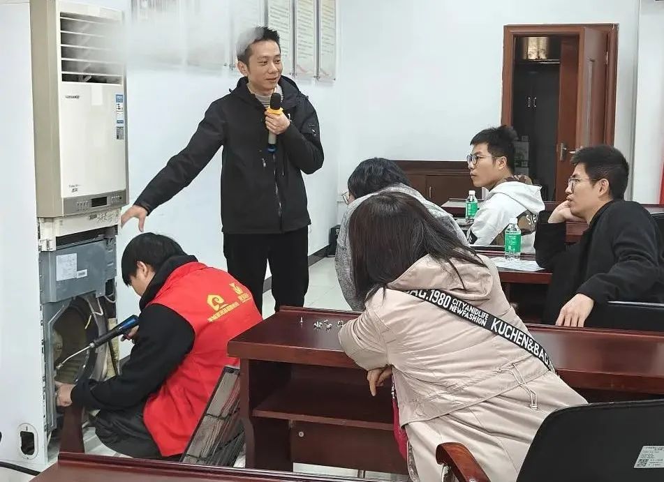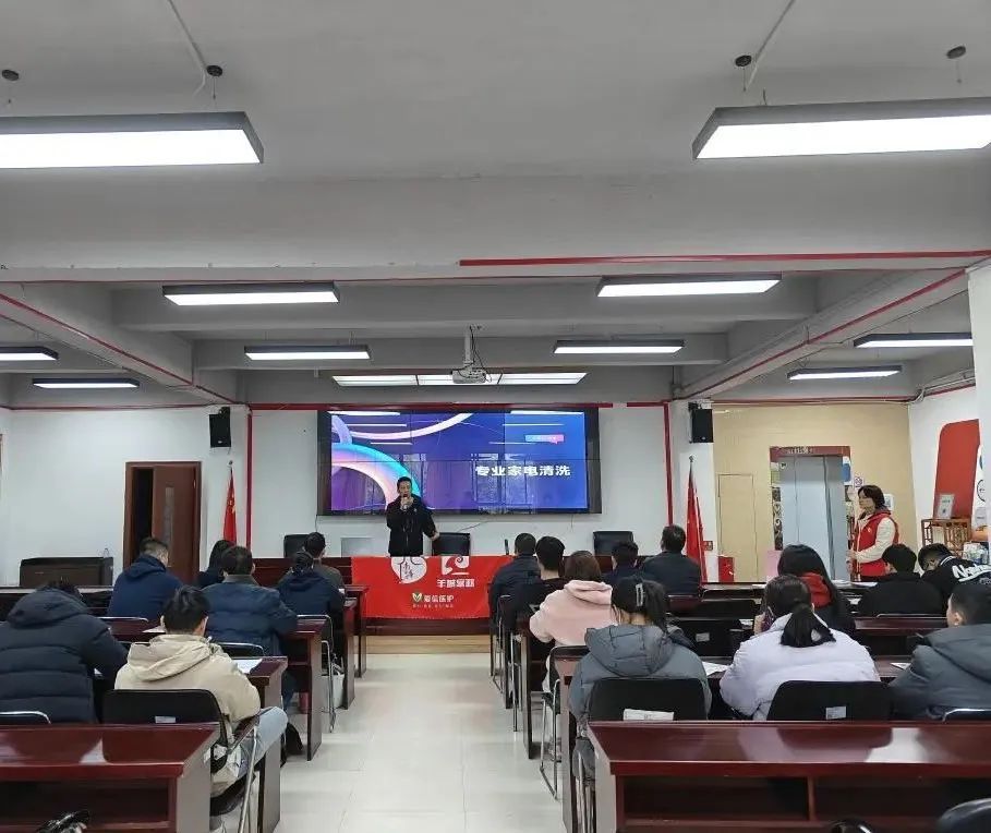 活动伊始,培训老师凭借其深厚的专业技能,向学员们详细讲解了空调、洗衣机、油烟机等日常家电的清洗与保养理论知识。随后,羊城家政的家电技术人员现场演示了空调清洗“拆、洗、装”全过程,以直观的方式让学员们看到专业清洗的效果与标准,学员们反响热烈,纷纷表示受益匪浅。在提问环节,学员们积极发言,就日常使用家电时遇到的问题向培训老师请教,老师也耐心细致地一一解答。
