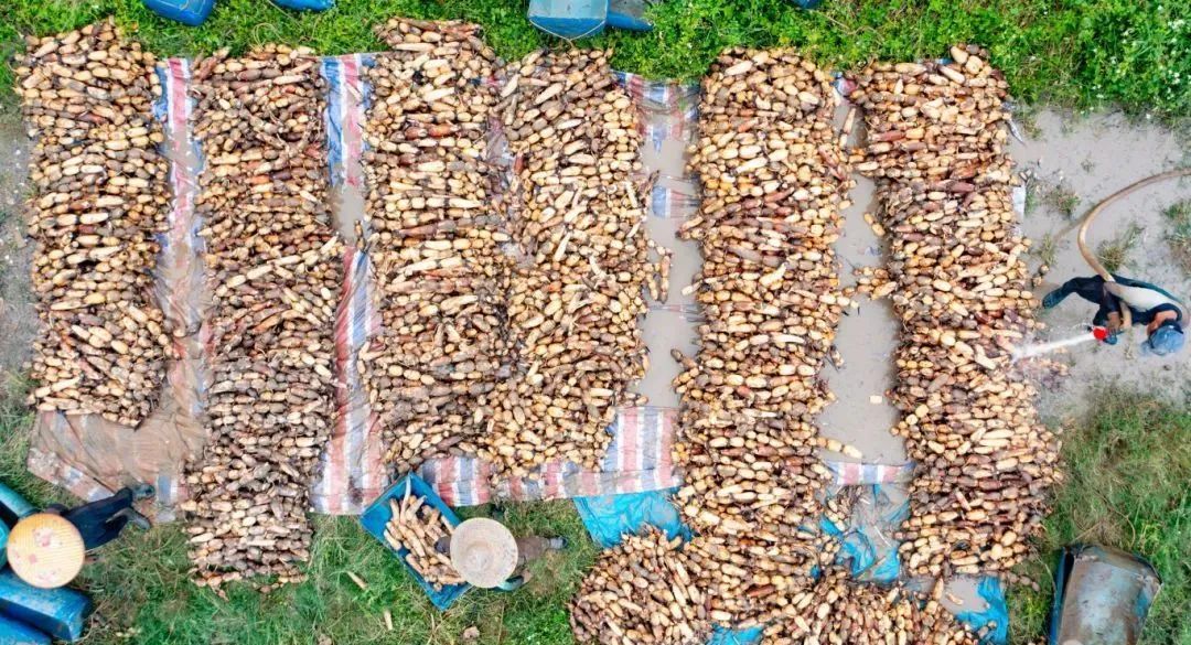 珠海金湾区平沙镇的莲藕产业示范基地,年平均亩产可达2800斤,到了莲藕采收的日子,荷塘上满是沉甸甸盛满莲藕的小船,岸边成堆莲藕整齐排列,白白胖胖甚是喜人。