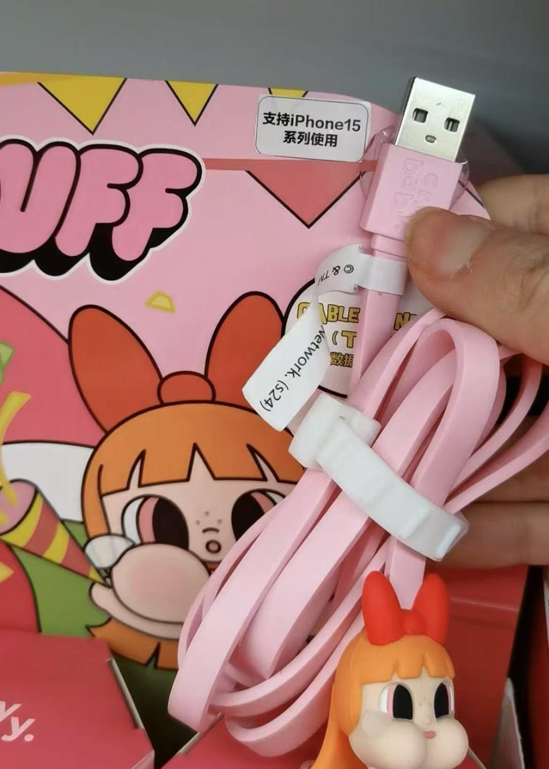 近日,梅林在合肥市包河区万象汇泡泡玛特门店购买了一根飞天小女警系列的盲盒数据线,回家后梅林将该数据线连接插座上的USB接口来对一台iPhone 15 Pro手机进行充电,随后手机便出现了故障。第二天,经苹果官方门店检验,这台手机已无法开机且无法充电,设备主板与电池均被烧坏。经苹果官方鉴定,维修费需5299元,且内部素材已无法恢复。