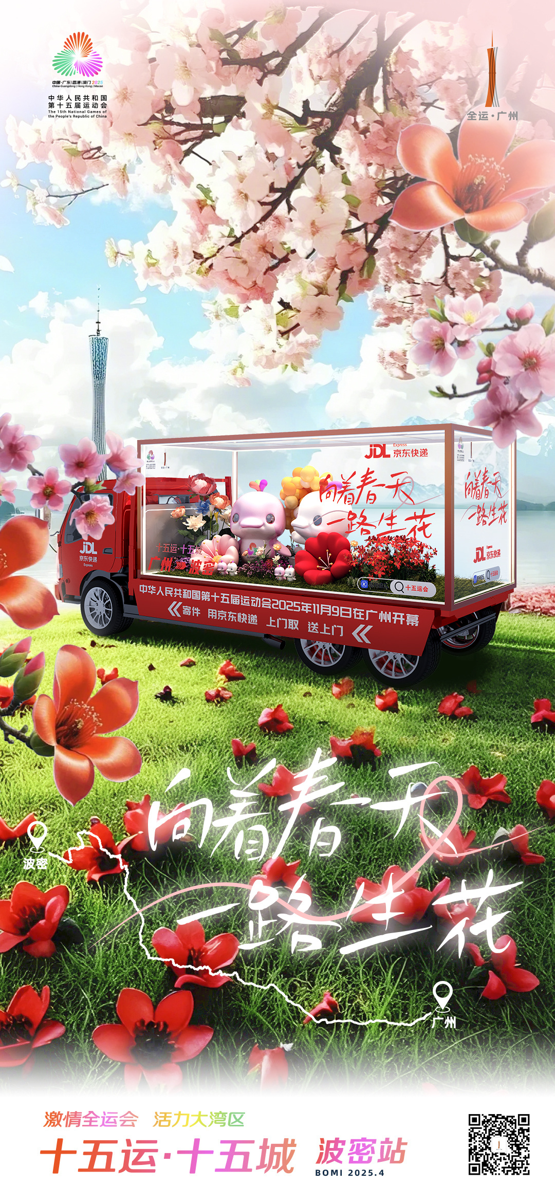 3月26日启程!从广州到波密,满载着全运“好运”以及对春天的向往,一辆全运花车从广州海心沙广场出发,广州的木棉与波密的桃花、全运会的“喜洋洋”与“乐融融”、歌手温奕心与20位小朋友,与你相约一起见证这场跨越2700公里的春日之旅,一路唱响这首《一路生花》。