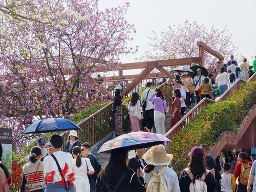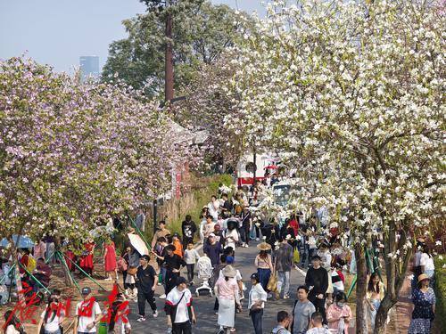 路上人头攒动,每天都有不少游客前来赏花。