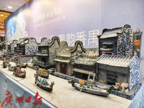 推介会会场外展示的用布料制作的岭南建筑。
