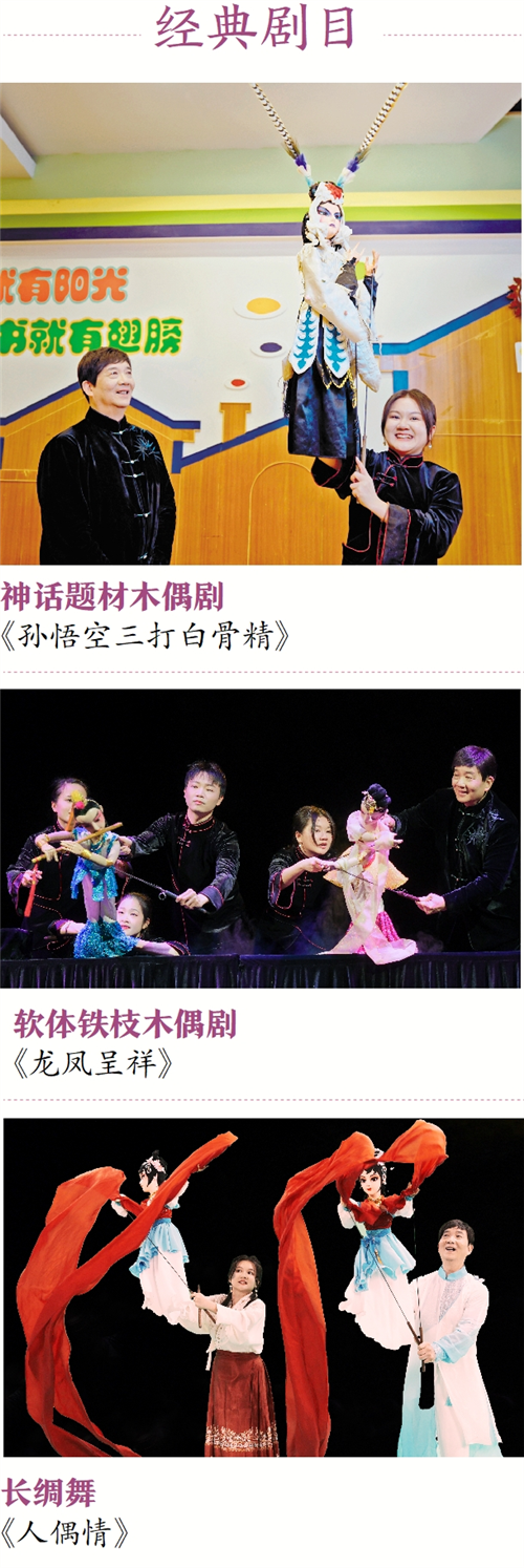 “我们的演出保留了广东木偶戏特有的戏曲韵味特点,也融入了芭蕾舞、古典舞等高雅艺术,让表演看起来更加优美。剧院的年轻演员中不乏声乐、舞蹈、表演专业的本科生。之前,剧院还专门到上海招收木偶专业的学生。”崔师傅介绍,如今已经退休近10年的他仍在为广东木偶戏的人才培养、剧目创作贡献自己的力量,还不时就长绸舞的动作、身段、神韵迸发新灵感。“在全国木偶比赛上,我指导的木偶剧《花木兰》中演员演绎出踢枪、射箭、跪转等高难度动作,这场演出仿若在平静湖面上投了一颗石子,引发木偶界热议。接下来,我期待能创作出像舞剧《只此青绿》中‘青绿腰’那般优美的动作。”崔师傅说。