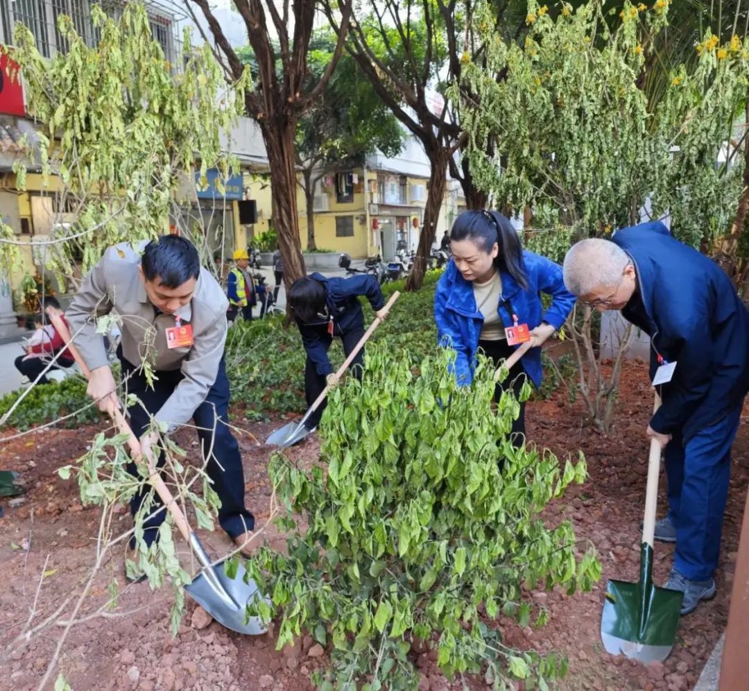 活动伊始,相关领导向人大代表们详细介绍了广场在绿化升级、景观设计、公共设施升级等方面的具体变化,代表们则结合街道实际情况,提出了多项建设性意见,包括如何引导居民参与社区绿化的建设和管养等,以确保街道绿美生态建设工作能够持续高效推进,为居民创造更加宜居的环境。随后,代表们参与义务植树,栽下了丛生黄槐、黄金香柳、红花勒杜鹃等多种树木,为社区增添了一片新绿。