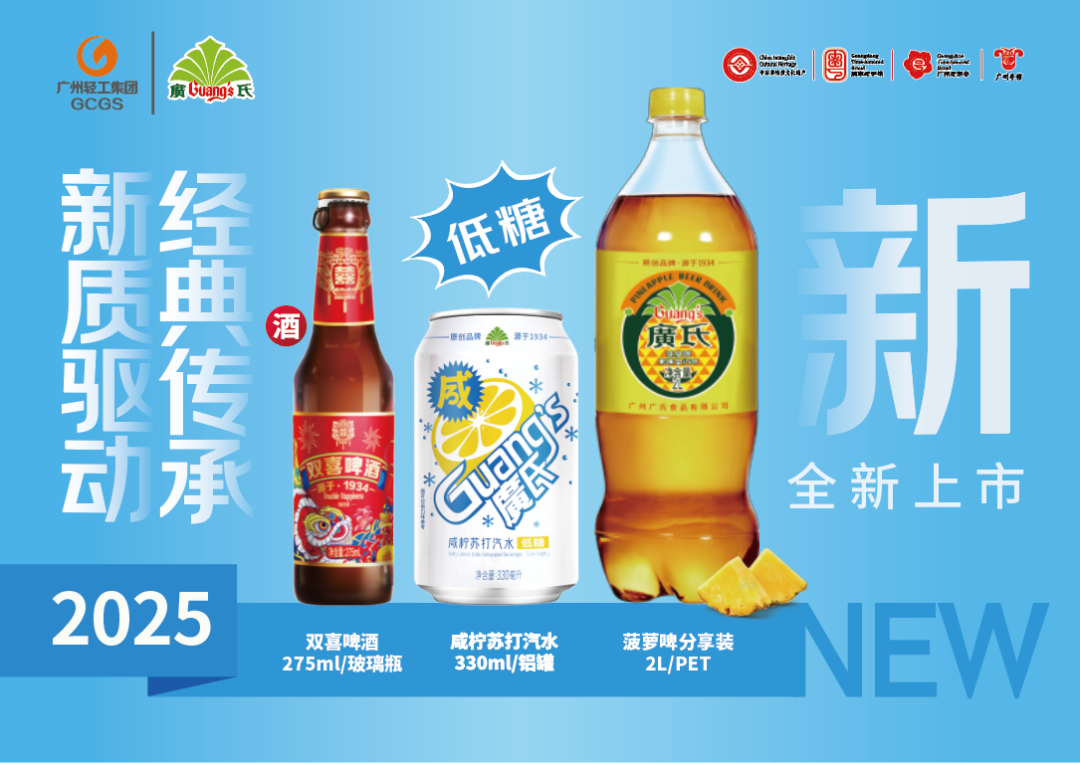 廣氏品牌此次重磅推出的三款新品中,菠萝啤果味饮料2升分享装、咸柠苏打水(低糖)尤为亮眼。前者以“超大容量+果香畅饮”精准切入家庭聚会场景,后者则凭借“海盐柠檬+低糖配方”直击健康消费趋势。此外,双喜啤酒275ML装以“小包装+高麦香”特色,成为快节奏生活中的微醺新选择。三款产品形成差异化矩阵,展现出品牌对消费场景的深度洞察与创新实力。