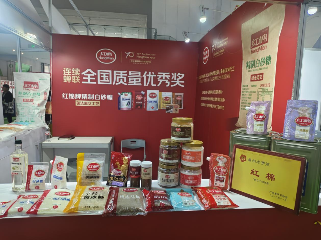 与廣氏品牌相呼应的是,红棉品牌在此次糖酒会上同样展现出了其独特的魅力。红棉展位设计现代而温馨,各类糖类产品琳琅满目,从白砂糖到糖类衍生品,每一款产品都体现了红棉对品质的严苛要求和对消费者的深切关怀。