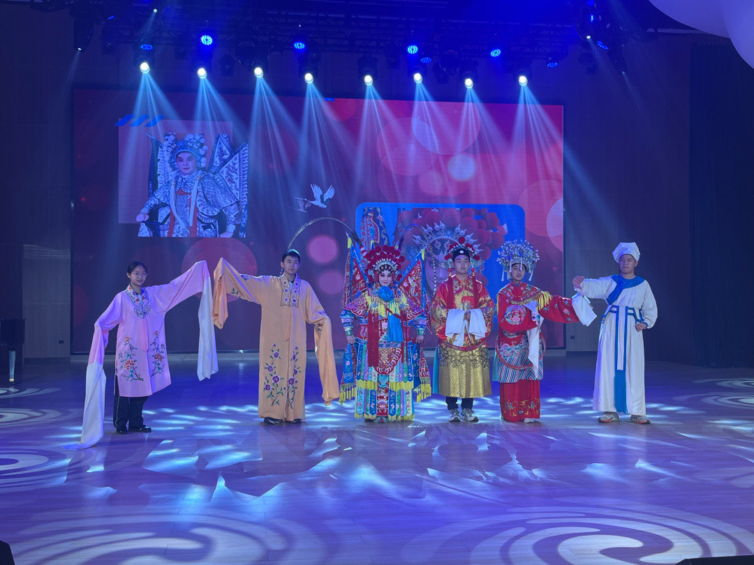 活动中,广州文化艺术发展中心为广州外国语学校授牌“粤剧教育传承实践基地”,粤剧艺术工作者、学生相继带来粤剧演唱、脸谱工艺讲解、戏服文化诠释等节目,多位同学穿上粤剧戏服,沉浸式体验并感受粤剧的艺术形式与文化内涵。