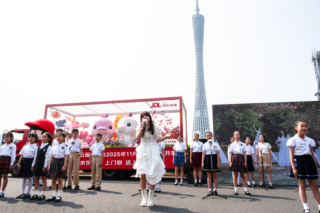 “我希望许过的愿望一路生花,护送那时的梦抵挡过风沙,指尖的樱花如诗写谁的韶华,疯狂的热爱夹带着文雅……”随全运花车一同从广州驶向波密的还有广州出品的神曲《一路生花》。26日,酷狗音乐人、《一路生花》原唱温奕心也来到了发车仪式现场,与广州市少年宫20位孩子一起现场唱响《一路生花》。据透露,《一路生花》已经推出了粤语版本,不久的未来还会推出结合十五运主题的MV,粤语版本与MV都将伴随全运花车一起在多个地区传递,送出对全运“好运”的美好祝愿。温奕心说:“非常开心可以在广州小蛮腰下唱歌,还可以为全运花车发车助力更是特别荣幸,希望十五运会也可以顺利启航、一路生花。”
