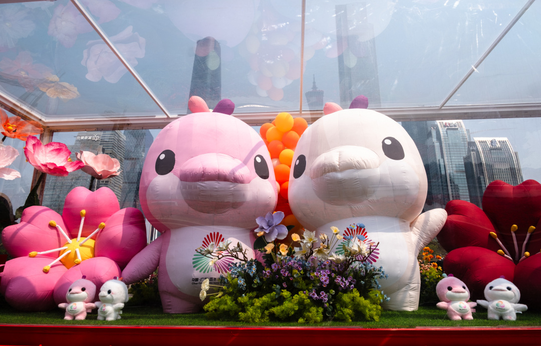 26日的发车仪式现场,“春之专列”全运花车惊艳亮相。该花车将搭载着十五运会和残特奥会吉祥物“喜洋洋”“乐融融”,广州木棉与波密桃花在车内碰撞出绚烂的火花。