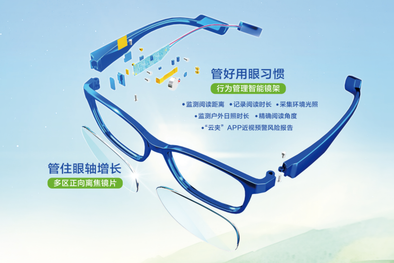 “小青葵”是一款集合近视筛查、用眼行为监测、多区正向平光离焦镜片等多种功能于一体的近视预防眼镜,能够精准管理孩子的用眼行为,有效抑制眼轴增长,预防近视的发生。张晓晓介绍,“小青葵”有两个核心设计,一是镜架内置生物传感技术和大数据算法,能够实时监测阅读距离、阅读时长、阅读角度、户外活动时长及环境光照强度。一旦发现不良用眼行为,眼镜会即时振动提醒,并将相关数据传输至家长手机的App中;二是镜片采用“多区正向光学离焦”技术设计,可延缓眼轴增长,推迟近视发病时间,达到预防近视、降低高度近视发生概率的目的。