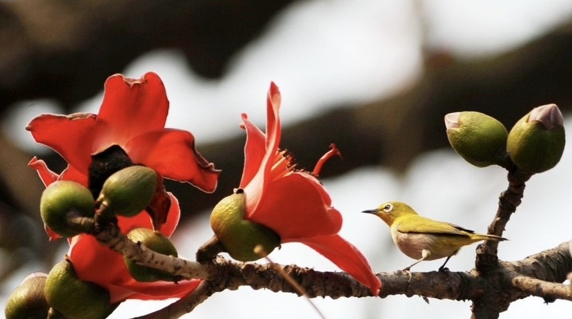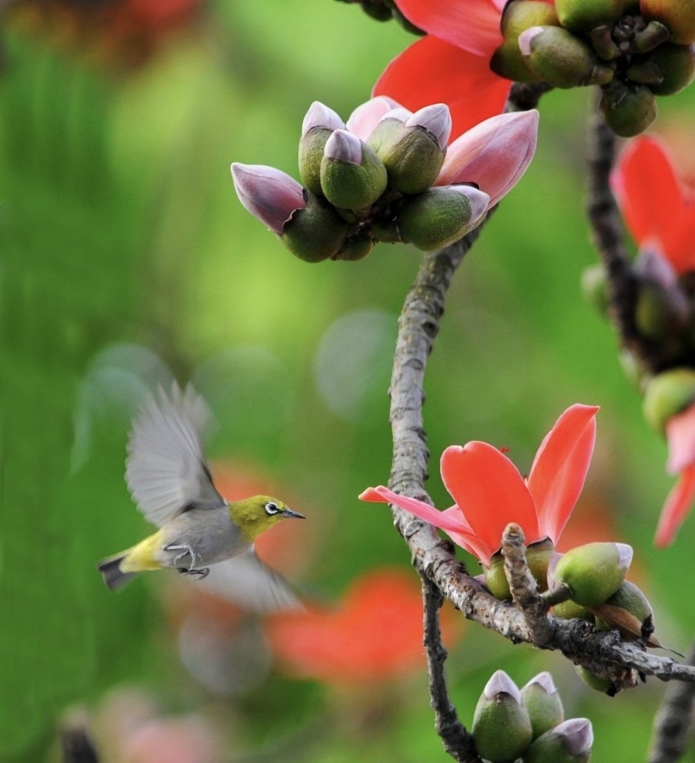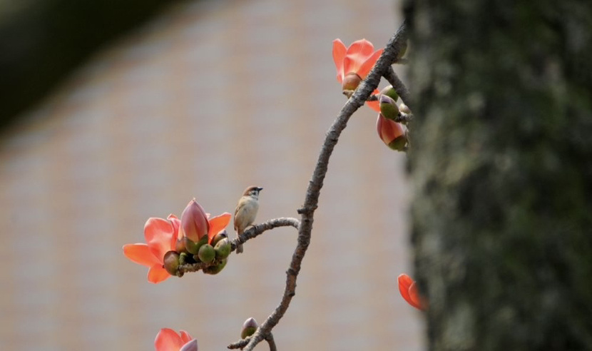 它们穿梭在花丛间,或轻盈地落在枝头,惬意地梳理羽毛;或欢快地跳跃嬉闹,尽情享受着甜美的花蜜。灵动的小鸟与娇艳的木棉花相互映衬,构成一幅充满生机的自然生态图,也为城市增添了活力。