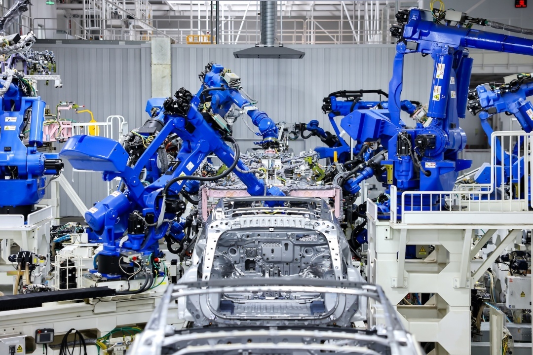 涂装车间采用行业先进的定量机和喷枪系统实现100%全车自动涂胶,结合视觉定位系统,打胶精度达到0.5mm;总装车间整体自动化率达到国内汽车行业水平近3倍,导入零件自动配送AGV及直供输送线,实现物流效率提升25%。