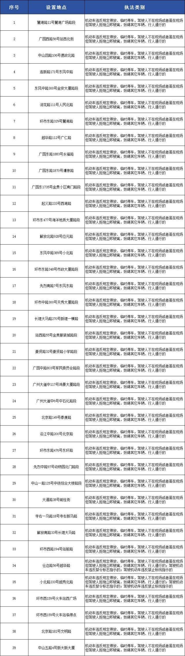 该批设备执法类别涉及“机动车违反规定停放、临时停车,驾驶人不在现场或者虽在现场但驾驶人拒绝立即驶离,妨碍其它车辆、行人通行的;驾驶机动车违反禁令标志指示的;驾驶机动车违反禁止标线指示的”等。广州交警表示,2025年4月3日起将依法对有交通违法行为的车辆进行拍摄取证并予以执法,请广大驾驶人守法出行、安全驾驶。