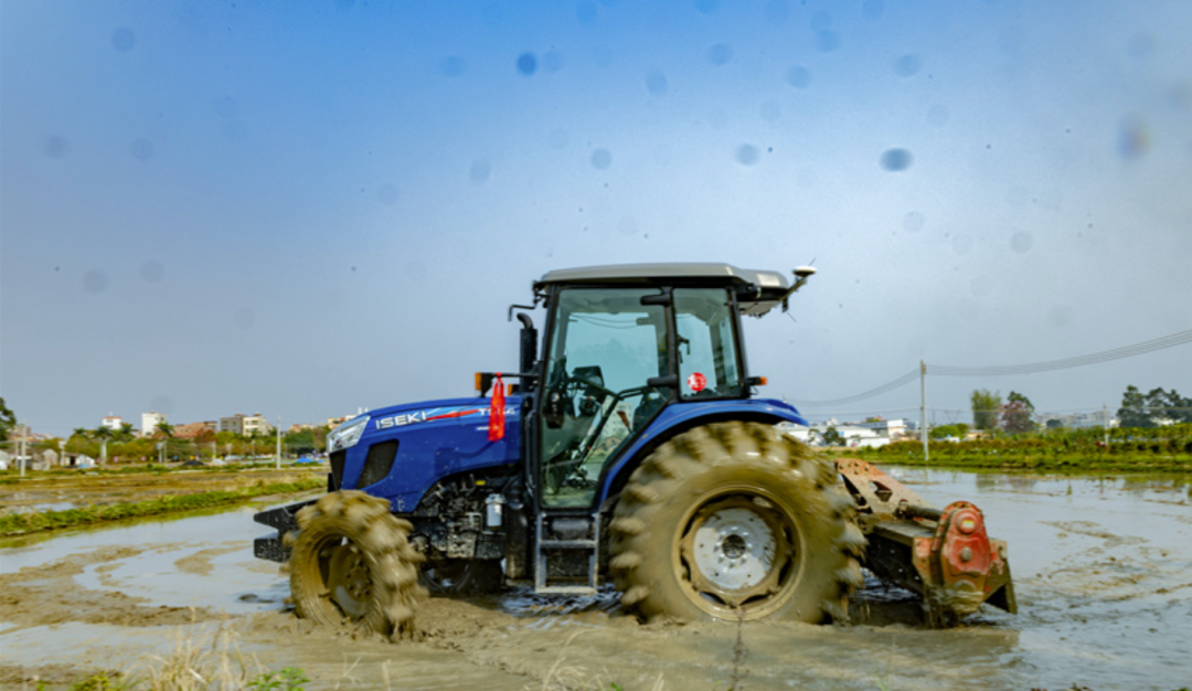图:现代农机在钟落潭镇虎塘村内的水稻田上作业