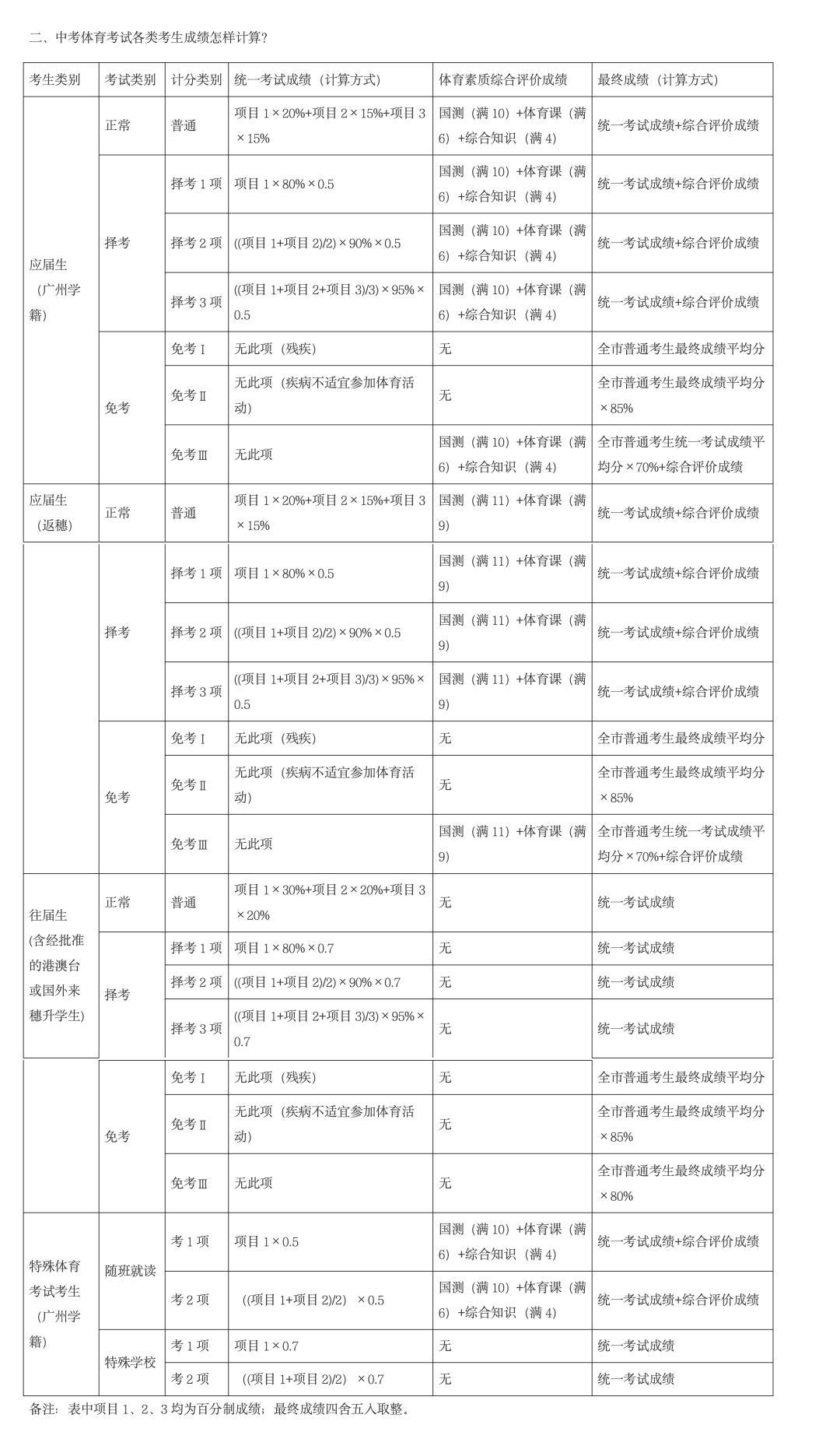 二、中考体育考试各类考生成绩怎样计算?