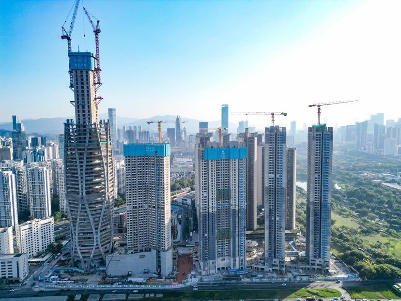 此次封顶的福田湾区智慧广场项目为一栋358m的超高层建筑,平面呈独特的莲花瓣造型,从地面至天空呈现出富有弹性及生命力的自然生长之势。中建三局项目团队始终秉承“科技赋能城市”建设理念,深度融合智能化技术与城市空间。“我们在项目建设过程中改变传统施工方法,运用了大量最新的建造技术,力争将华富村打造成福田区居民的智慧新家园。”项目经理李东庚表示。