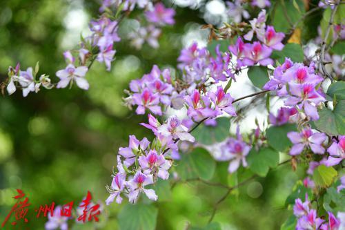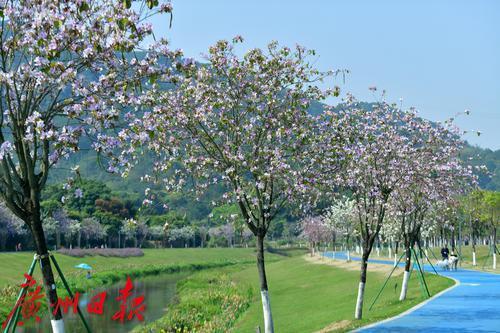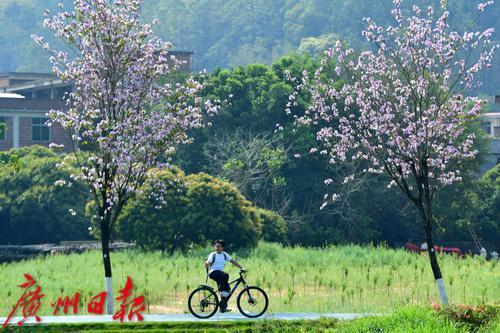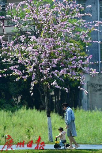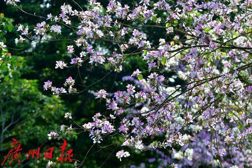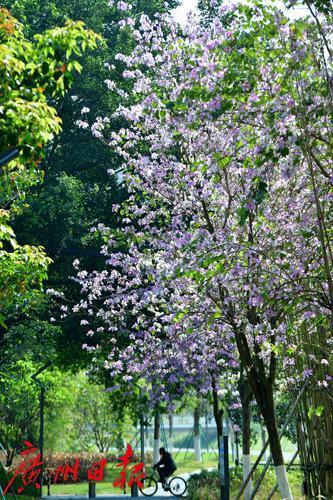 绿道旁满是盛开的紫荆花。