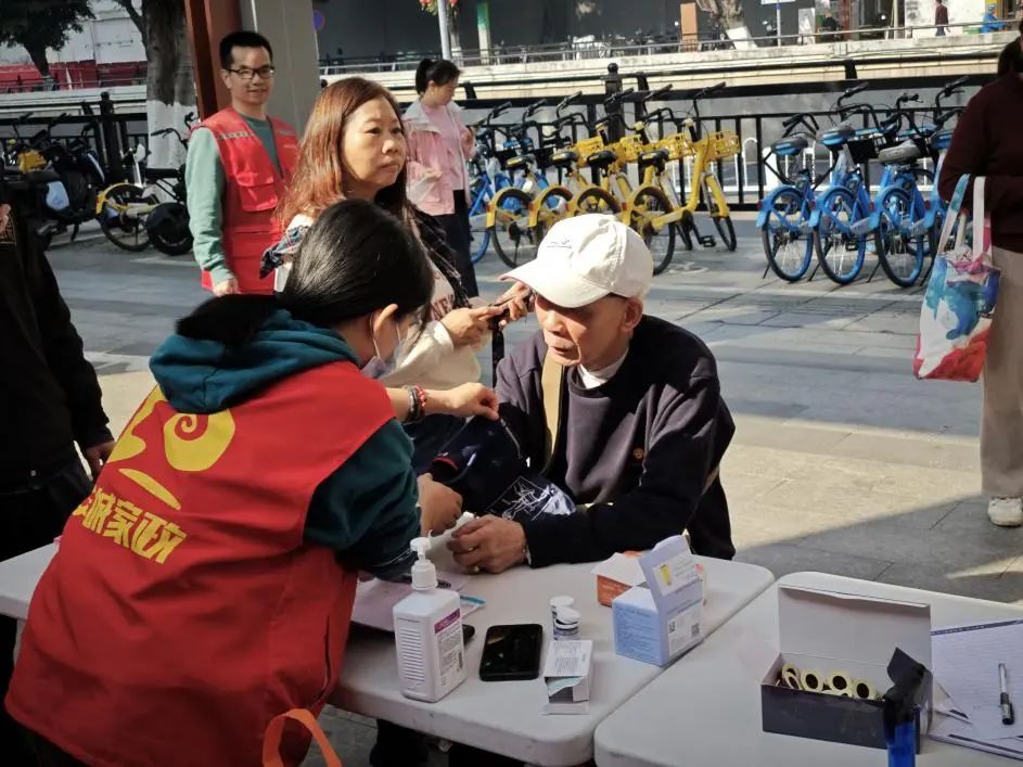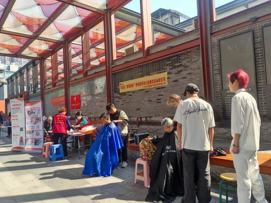 本次惠民服务活动共设置三大服务专区。在健康监测区,护士为居民提供血压、血糖、尿酸检测及健康咨询。在中医康复区则有康复师运用推拿、艾灸、耳穴贴等传统疗法,为居民缓解颈肩腰腿疼痛。此外,在义剪服务区内,4名专业理发师为居民及特殊群体提供暖心剪发服务。同时,现场同步通过派发宣传单张、展示架等形式开展“家政服务大讲堂”,向路过的居民介绍居家保洁、母婴护理、养老照护等羊城家政服务项目。