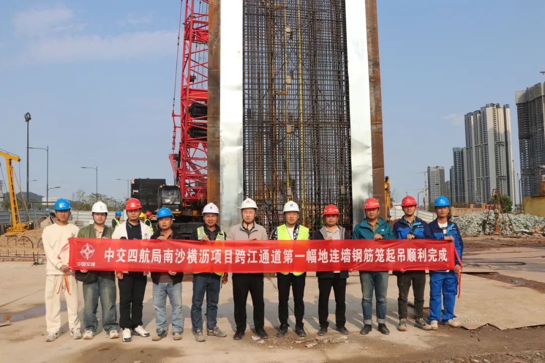 中交四航局南沙横沥项目跨江通道首幅地连墙钢筋笼起吊顺利完成现场合影。通讯员供图