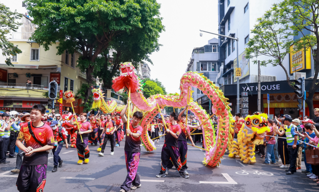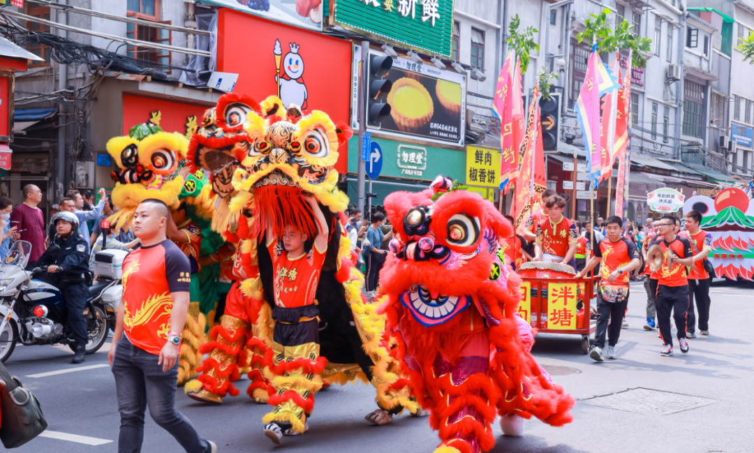 泮塘四约龙狮队在上一年的巡游队伍中,龙狮齐舞,广受关注。
