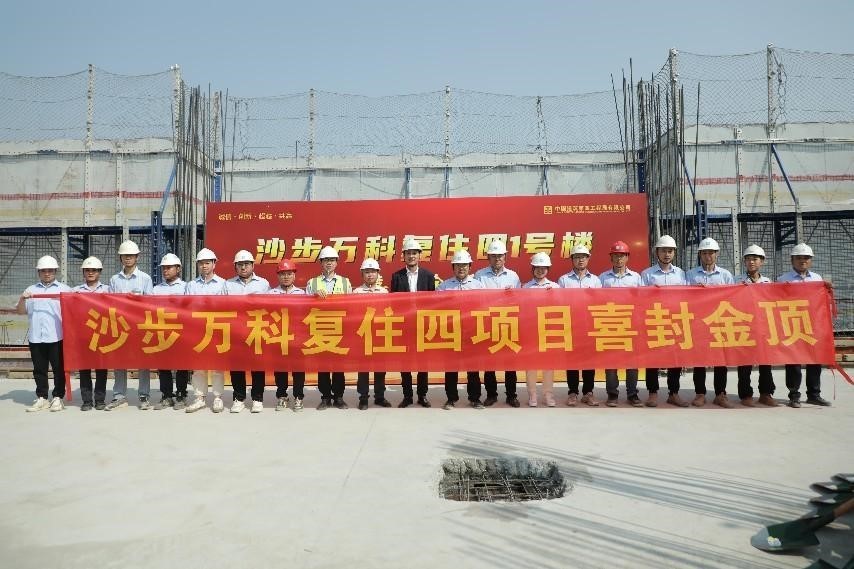 (沙步旧村改造项目复住四地块首栋主体结构迎来封顶节点。)