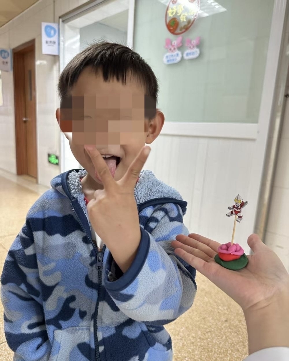 近日,在广州市番禺区何贤纪念医院儿科病房里,5岁的肺炎患儿晨晨用他稚嫩的双手,为护士姐姐们送上了一份特别的礼物——一个用软陶泥精心制作的“彩虹蛋糕”。蛋糕上插着的奥特曼蜡烛,在晨晨心中是拥有超能力的“超能力宝石”,承载着他对护士姐姐们的满满祝福,以及战胜病魔的坚定信念。