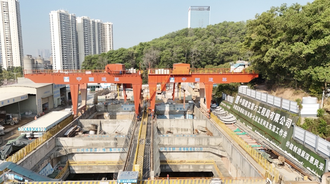 深惠城际铁路全长58.738公里,设车站11座。凤岗站至大运北站区间,经过东莞、深圳两市的区域,由深圳地铁投资建设,中建六局、中建南方承建。其中,凤岗站位于东莞市凤岗镇雁湖公园东南角,大运北站位于深圳市龙岗区龙城街道。该施工区间段全长约5.2公里,包含1个工作井、2个盾构段,左线右线同步施工。