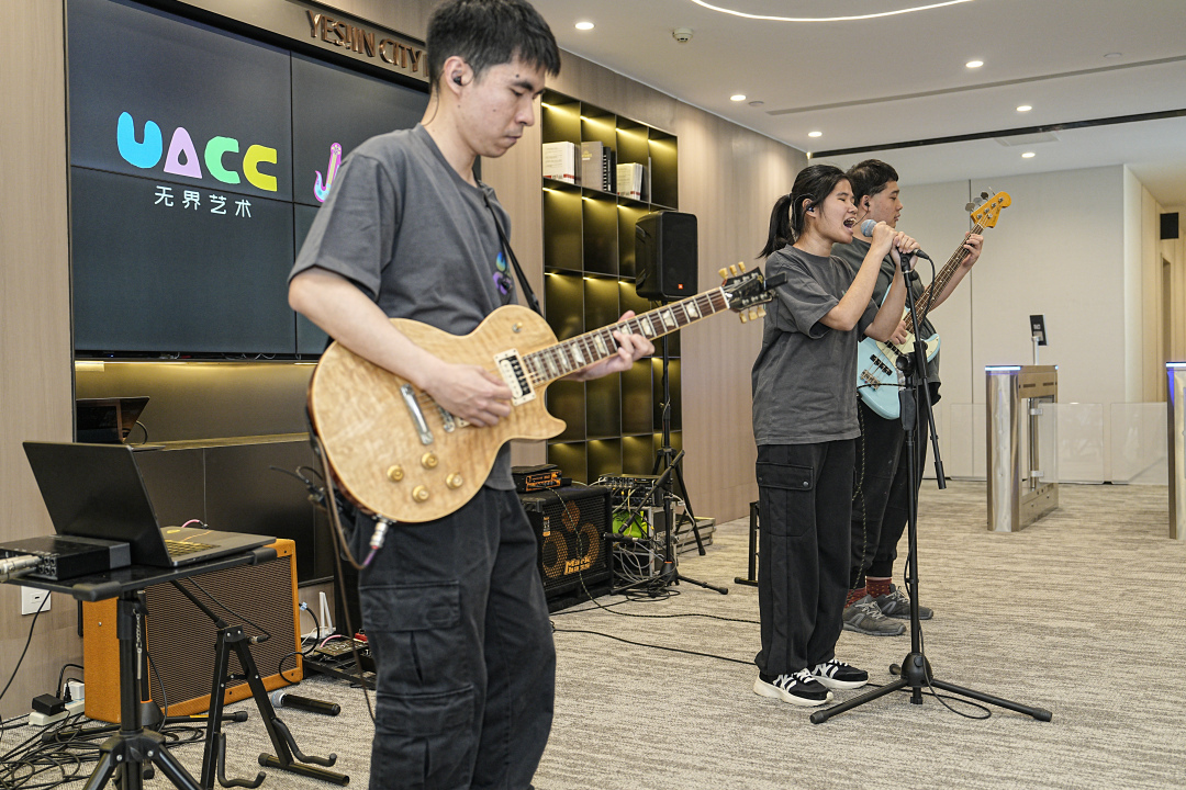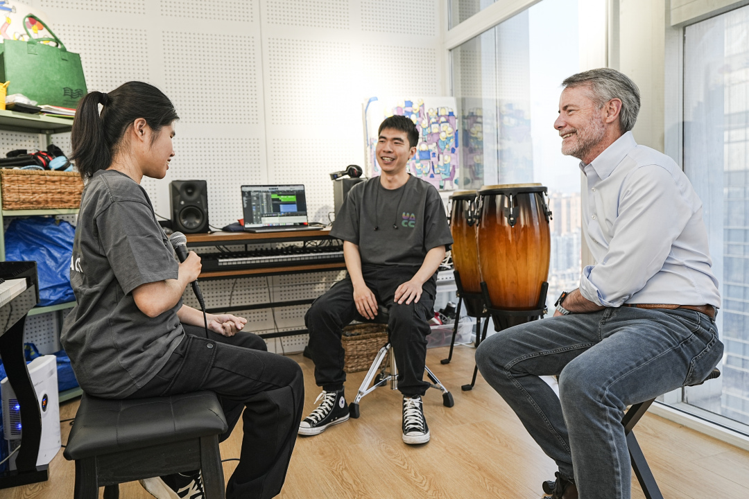 随后,苹果一行人走进了融合乐队Jazzy Pie工作室进行参观,深入了解了Apple辅助功能如何让特殊人群更好地享受科技带来的便利与乐趣,并现场感受了乐队的精彩表演。乐队那真诚质朴的歌词,搭配上美妙动听的歌声,深深打动了在场的每一个人,感染着大家的情绪,整个现场都沉浸在这一独特的音乐魅力之中。