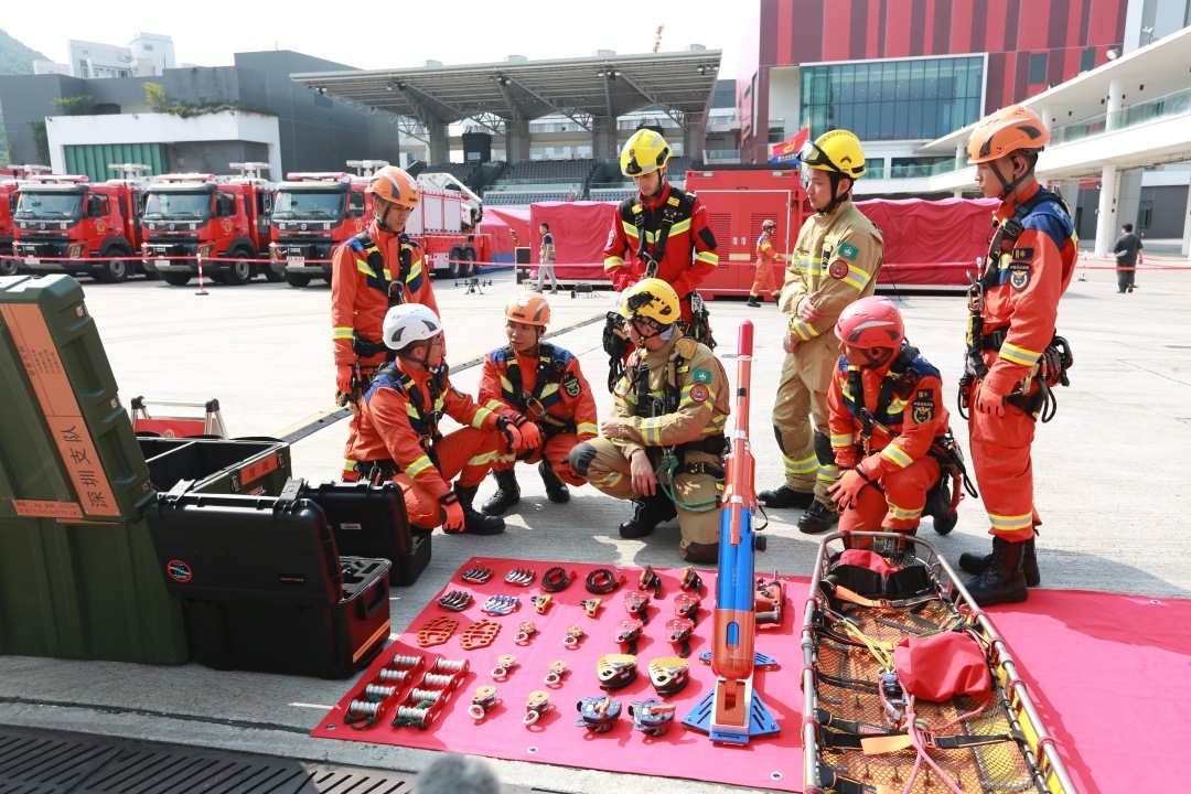 联合演练模拟台风携暴雨突袭香港,造成城市多地严重内涝,共设置了建筑物坍塌、高空救援、地库停车场水浸、交通意外事故、危化品泄漏、近岸水域演练等10个科目。演练通过全链条检验应急机制启动、信息共享、联合指挥等关键环节,全要素构建作战指挥、协调联络、安全保障等功能体系,创新采用“粤澳跨境协同、装备统筹调配、三地联合行动”救援模式,实现人车装备深度融合。