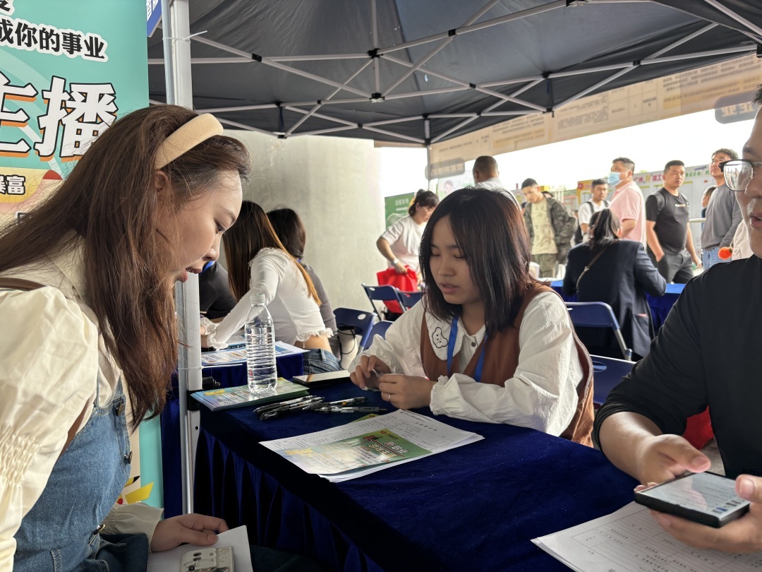 “小白挑战高收入”“边玩边赚”……在招聘会现场,广州熹枫文化科技有限公司打出“诱人”广告,招聘5—10名游戏主播,还有数据专员、游戏客服专员、短视频剪辑专员、游戏商务专员等岗位,“我们游戏主播的待遇分为三块,包括底薪、提成和福利。没有经验的新手主播,可以拿3000元‘无责底薪’,只要试播时长够就给。正式主播的底薪是4000元—10000元,流水越高底薪越高。提成是按游戏利润的一定比例给,福利包括社保及餐补。”