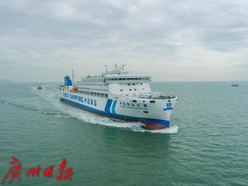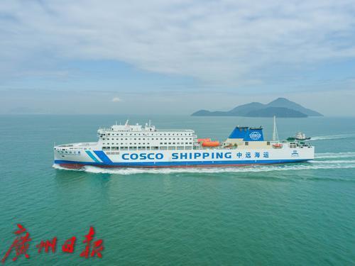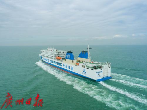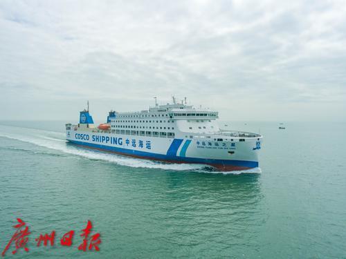 这艘现代化节能环保型客滚船由上海船舶研究设计院设计,船长180米,宽25.8米,服务航速20节,能承载旅客、轿车、载重汽车等,装载426个标准集装箱。