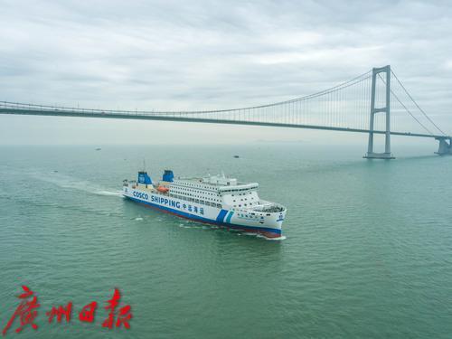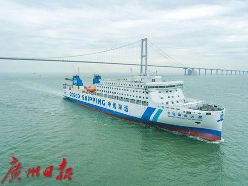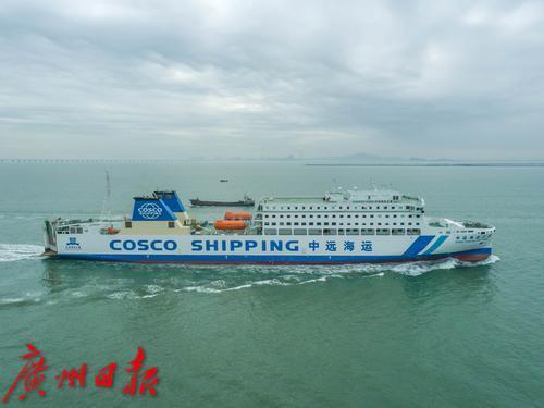 3月11日,中远海运之星号客滚船在珠江口航道海上试航。